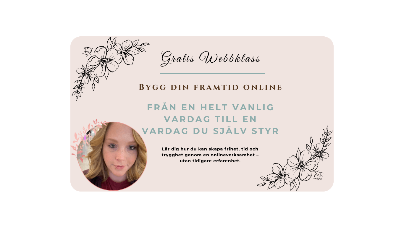 Jag är mamma till två små tjejer. Jag känner att jag inte räcker till i vardagen med mitt heltidsjobb på annan ort. Jag vill skapa mer tid för mig själv och min familj och släppa beroendet av en anställning. Jag vill skapa min egen frihet!